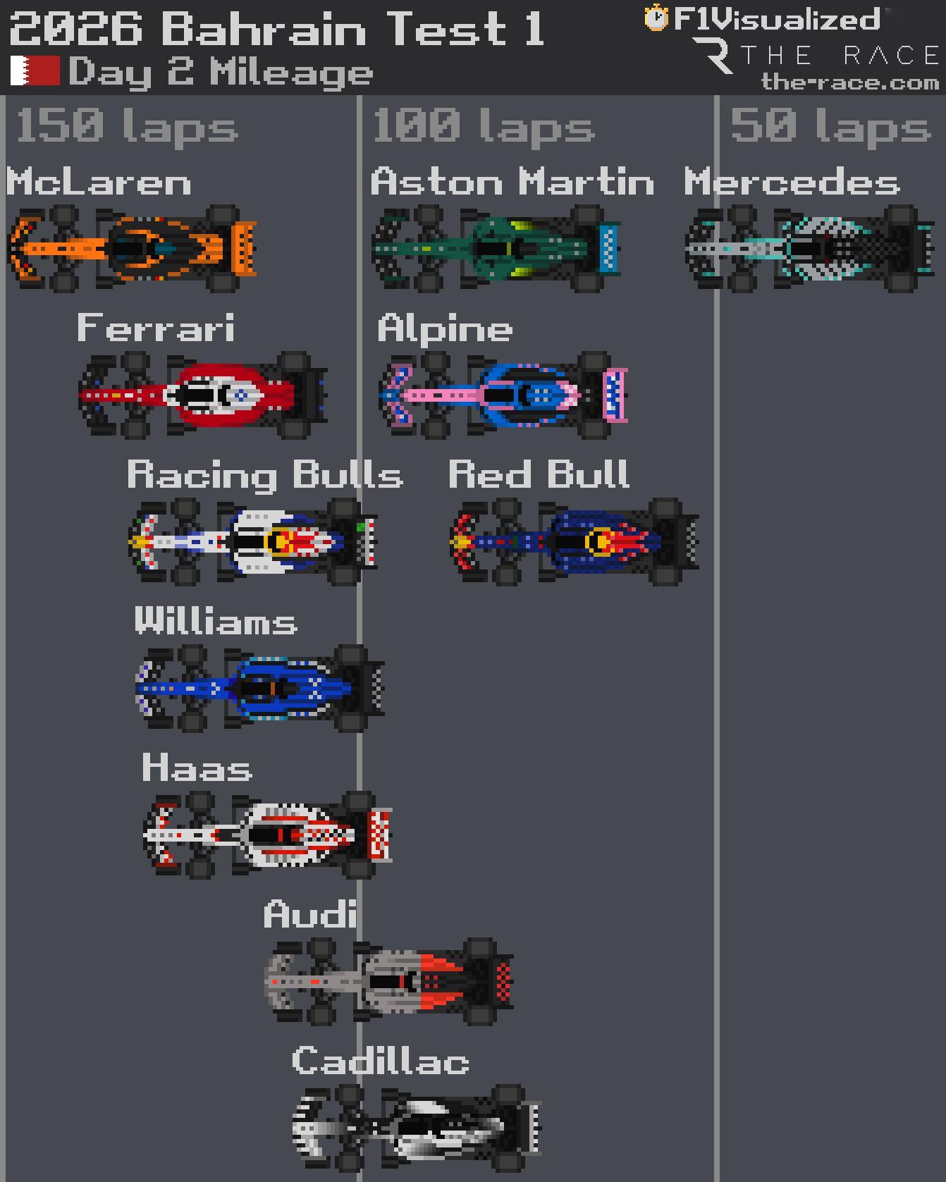 2026f1季前测试Day2看看谁跑的更快,谁跑的更多