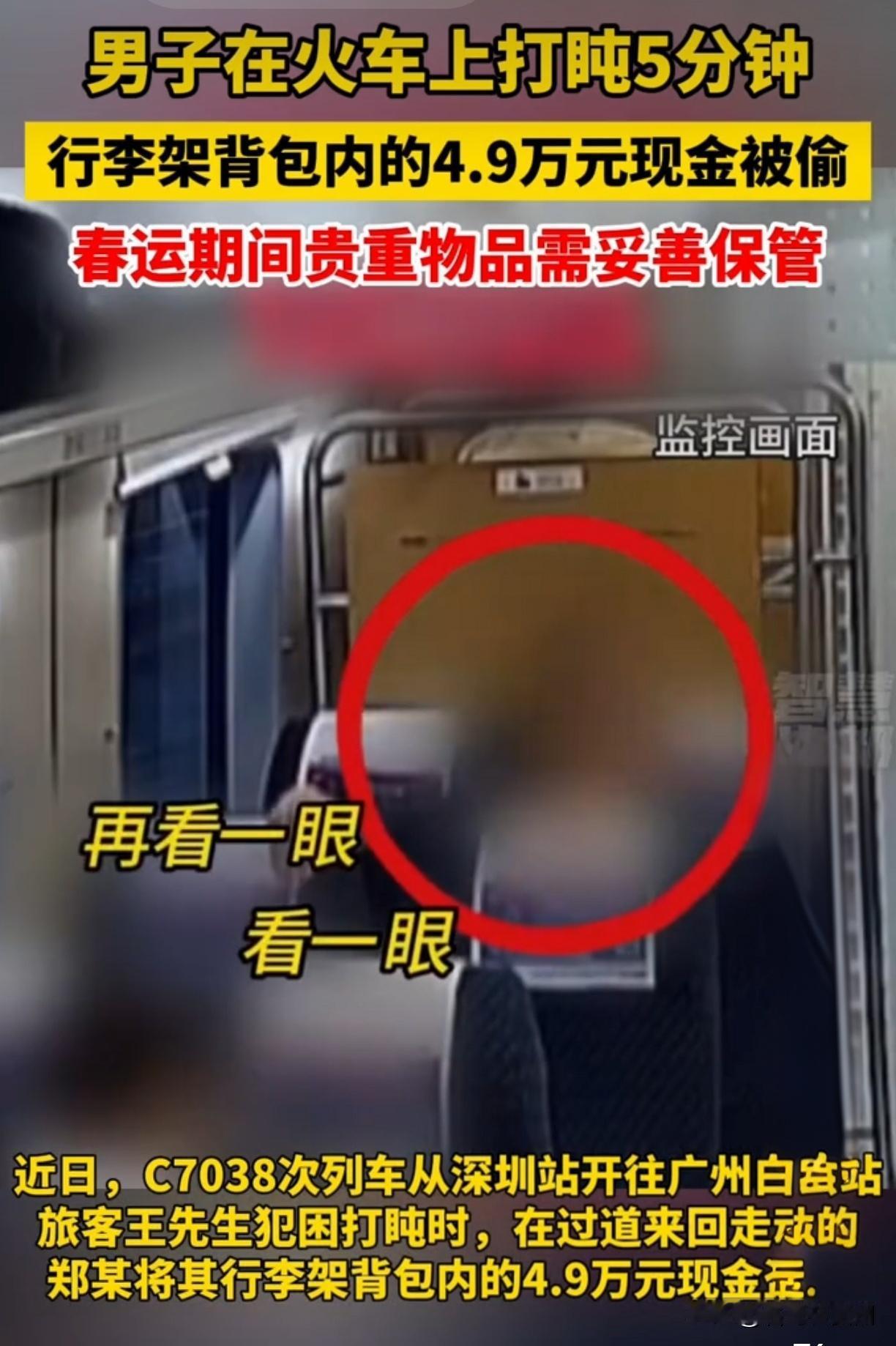 打盹5分钟4万9没了?警察找到他时,所有人都愣了! 坐火车打了个盹,5分钟不到,头顶背包里的4万9千块现金,没了。 深圳的张大哥急得腿都软了,报警时手还在抖,话都说不利索:“警察同志,那可是我半年工钱,老婆还等着这钱看病……” 旁边乘客摇头:火车上这种人挤人的地方,现金放行李架,这不等于喂贼吗? 谁也没想到,3小时后,深圳公安不仅抓到了人,还追回4万8千6!张大哥攥着那沓钱,当着警察的面,直接红了眼眶。 这笔钱,是张大哥在老家工地绑钢筋挣的。 为了省几十块手续费,他没去银行汇款,把厚厚一摞现金裹进外套,塞进背包,压在行李架最里侧。 火车晃悠,他眼皮打架,心想:就眯一小会儿,包就在头顶,能出啥事? 偏偏那5分钟,贼盯上了他。 监控里,一个穿灰夹克的男人在车厢走了两趟,第三趟停在张大哥座位边,背对座位,手往后一探,10秒,拉开拉链,钱到手。 整个过程,前后不到20秒。旁边有人刷手机,有人睡觉,谁都没注意。 张大哥醒来一摸包,轻了。翻开一看,空了一个角。 他整个人像被抽空,瘫在座位上。 深圳北站派出所接警后,没半点拖沓。 调监控、研判轨迹、锁定嫌疑人,3小时后,民警在候车室的厕所隔间把人堵住了。 钱呢?塞在天花板夹层里,一分没动。 办案民警把钱一张张数清,装进证物袋,递给张大哥:“兄弟,数数,少没少?” 张大哥手指发抖,来回点了三遍:“少……少了400。” 民警没说话,从自己兜里掏出400块,塞进那沓钱里:“这400算我的,下次出门,钱可别离身了。” 张大哥愣住了,半天憋出一句话:“这钱我不能要……” 民警拍拍他肩膀:“拿着,看病要紧。” 本来这事到这儿,就是个暖心破案故事。 可反转来了。 张大哥不肯走,非要见那个小偷。 民警把人带过来,张大哥盯着他看了很久,问:“你为啥偷我钱?你知道那是救命钱吗?” 灰夹克男人低着头,半天挤出一句话: “我妈住院,手术费还差4万……我实在没办法了。” 空气突然安静。 民警叹了口气:“缺钱不是偷钱的理由,但你应该庆幸,今天遇到的是个愿意给你机会的人。” 张大哥沉默了几秒,没说话,转身走了。 走出派出所大门,他把那400块钱抽出来,塞进门口的捐款箱。 头也没回。 说实话,看到这儿我心里挺不是滋味。 400块,对咱们来说可能就是几顿饭钱,可对张大哥,那是他老婆几天的住院费;对小偷他妈,那是救命的一角。 有人说这贼活该,偷谁不好,偷个打工人的血汗钱。 也有人说张大哥太善良,换我非让他进去蹲几年。 可我想说,这事儿没绝对的对错。 张大哥原谅的不是那个贼,是那个为了母亲走投无路的儿子。 民警垫的那400块,也不是钱,是给一个普通人在绝望边缘拉的那一把。 出门在外,谁都不容易。 这件事也给所有坐火车的朋友提个醒: 行李架不是保险箱,贵重财物千万别离身。 你眯那5分钟,贼可能已经盯了你半小时。 现在的小偷也懂心理学,专挑你放松警惕那几秒下手。 别拿辛苦钱,去赌人性。 转发这条,提醒马上要出门的家人朋友: 包背前面是自己的,挂旁边是别人的,放头顶——那是贼的。 如果你是张大哥,会原谅那个小偷吗? 你有没有在火车站、飞机上丢过东西?后来找回来了吗? 评论区聊聊,咱们一起给出门在外的兄弟姐妹提个醒。 火车出行防盗指南 深圳公安硬核又暖心 血汗钱追回瞬间