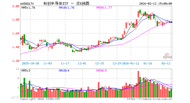 2月12日,科创半导体ETF(588170)涨0.06%,成交额6.04亿元。当日份额增加1200.00万份,最新份额为46.33亿份,近20个交易日份额增加18.62亿份。最新资产净值计算值为81.60亿元。