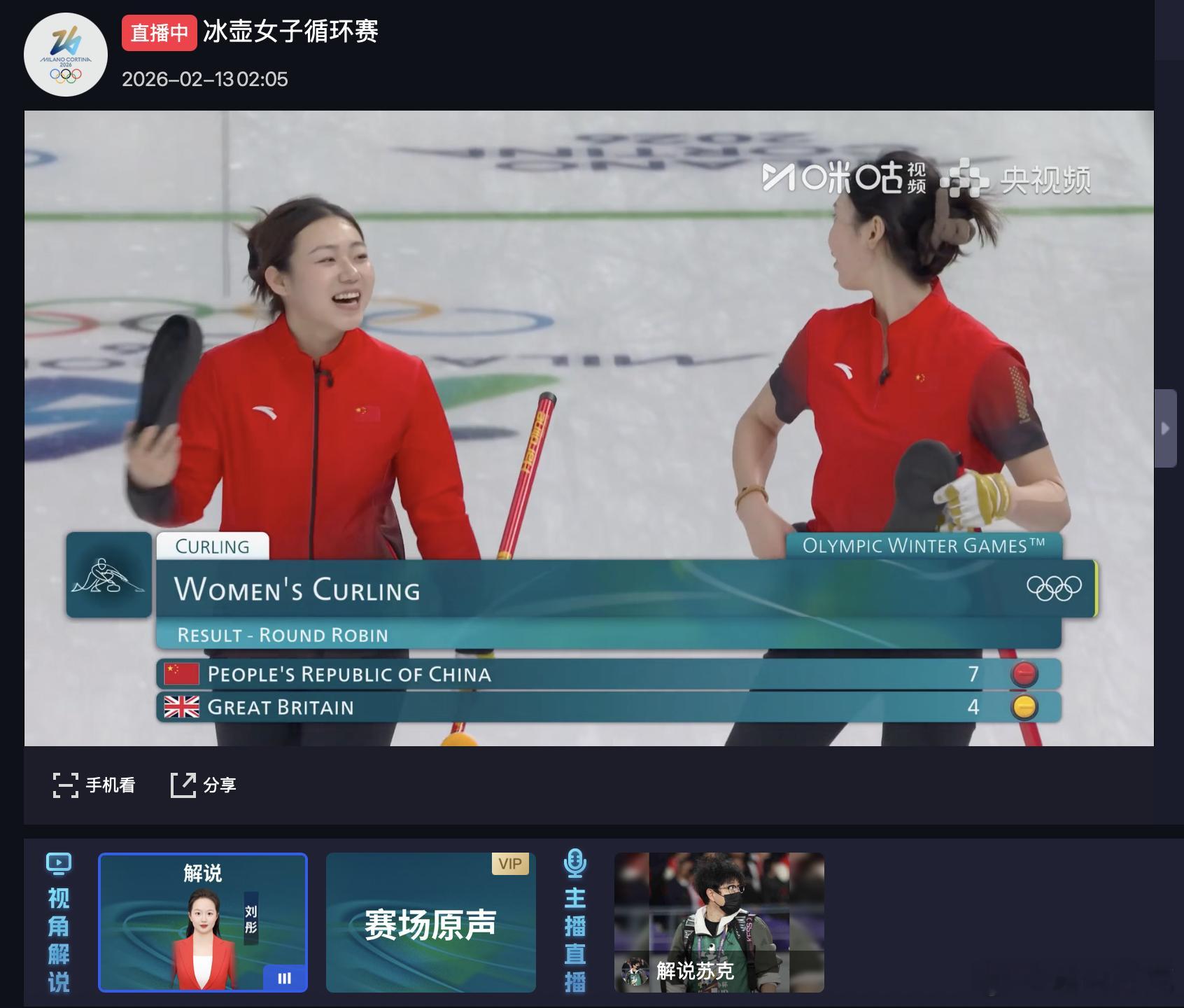 中国女足冰壶队7-4拿下胜利!今天韩雨发挥太好啦!!!看着几年内的一个蜕变呀!!!继续再接再厉!!!