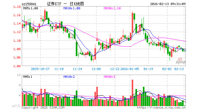 2月13日,证券ETF(159841)开盘涨0.00%,报1.074元。证券ETF(159841)重仓股方面,东方财富开盘涨0.18%,中信证券涨0.00%,国泰海通涨0.00%,华泰证券跌0.04%,广发证券涨0.28%,招商证券涨0.00%,东方证券涨0.10%,兴业证券跌0.29%,申万宏源涨0.00%,中金公司涨0.09%。