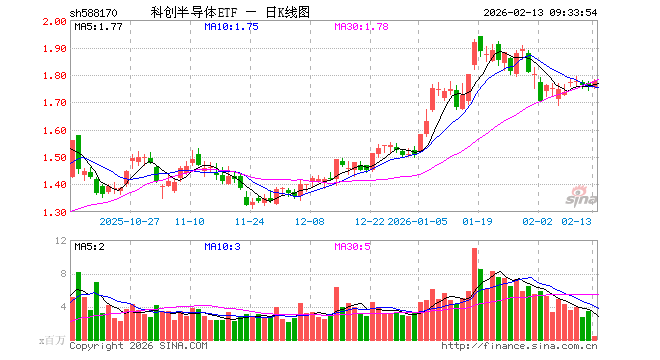 2月13日,科创半导体ETF(588170)开盘跌0.40%,报1.754元。科创半导体ETF(588170)重仓股方面,拓荆科技开盘跌0.34%,华海清科跌0.05%,沪硅产业跌0.15%,中微公司跌0.63%,中科飞测跌2.19%,安集科技跌1.37%,芯源微跌0.28%,天岳先进跌0.35%,华峰测控跌0.10%,盛美上海跌1.18%。