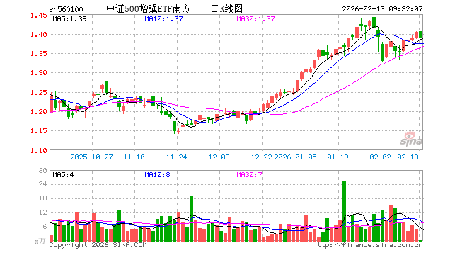 2月13日,中证500增强ETF南方(560100)开盘涨0.07%,报1.405元。中证500增强ETF南方(560100)重仓股方面,巨人网络开盘跌0.56%,天山铝业跌0.84%,中矿资源跌1.95%,金发科技跌0.16%,先导智能跌0.45%,西部矿业跌2.61%,中国卫星跌0.34%,豪迈科技跌0.77%,金风科技跌0.32%,兴森科技跌0.70%。