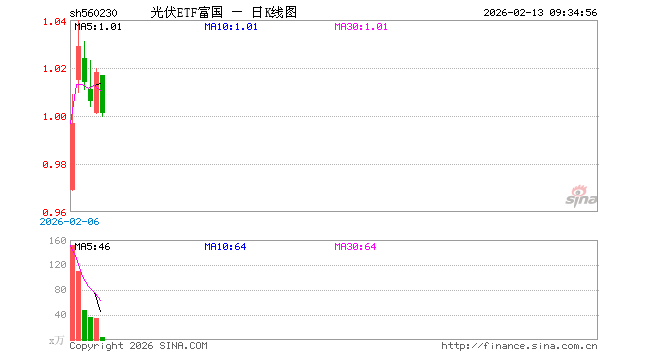 光伏ETF富国(560230)业绩比较基准为中证光伏产业指数收益率,管理人为富国基金管理有限公司,基金经理为牛志冬,成立(2026-01-28)以来回报为2.08%。