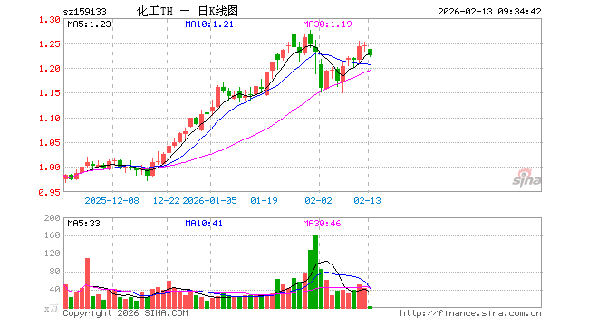 2月13日,化工ETF天弘(159133)开盘跌0.56%,报1.238元。化工ETF天弘(159133)重仓股方面,万华化学开盘跌1.12%,盐湖股份跌1.06%,天赐材料跌1.10%,巨化股份跌0.03%,藏格矿业跌1.14%,多氟多跌1.04%,云天化跌0.98%,恒力石化跌1.26%,华鲁恒升跌1.21%,宝丰能源跌1.46%。