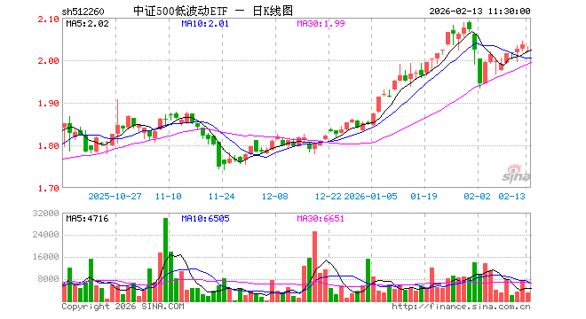 2月13日,截止午间收盘,中证500低波动ETF(512260)跌0.69%,报2.022元,成交额64.68万元。中证500低波动ETF(512260)重仓股方面,中科软截止午盘跌0.66%,广联达跌0.77%,中金岭南跌1.79%,驰宏锌锗跌0.99%,电投能源跌2.40%,海亮股份涨0.49%,西部矿业跌2.88%,金钼股份跌2.12%,和辉光电涨0.00%,云南铜业跌1.65%。