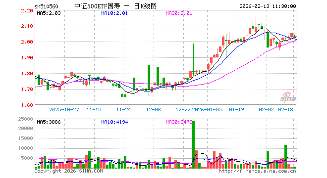 2月13日,截止午间收盘,中证500ETF国寿(510560)跌0.98%,报2.031元,成交额11.65万元。中证500ETF国寿(510560)重仓股方面,英维克截止午盘涨3.43%,信维通信涨0.00%,巨人网络涨0.02%,中矿资源跌0.05%,中国卫星跌0.44%,航天电子跌0.08%,先导智能涨0.20%,卧龙电驱涨1.16%,赤峰黄金跌1.44%,兴业银锡跌3.15%。