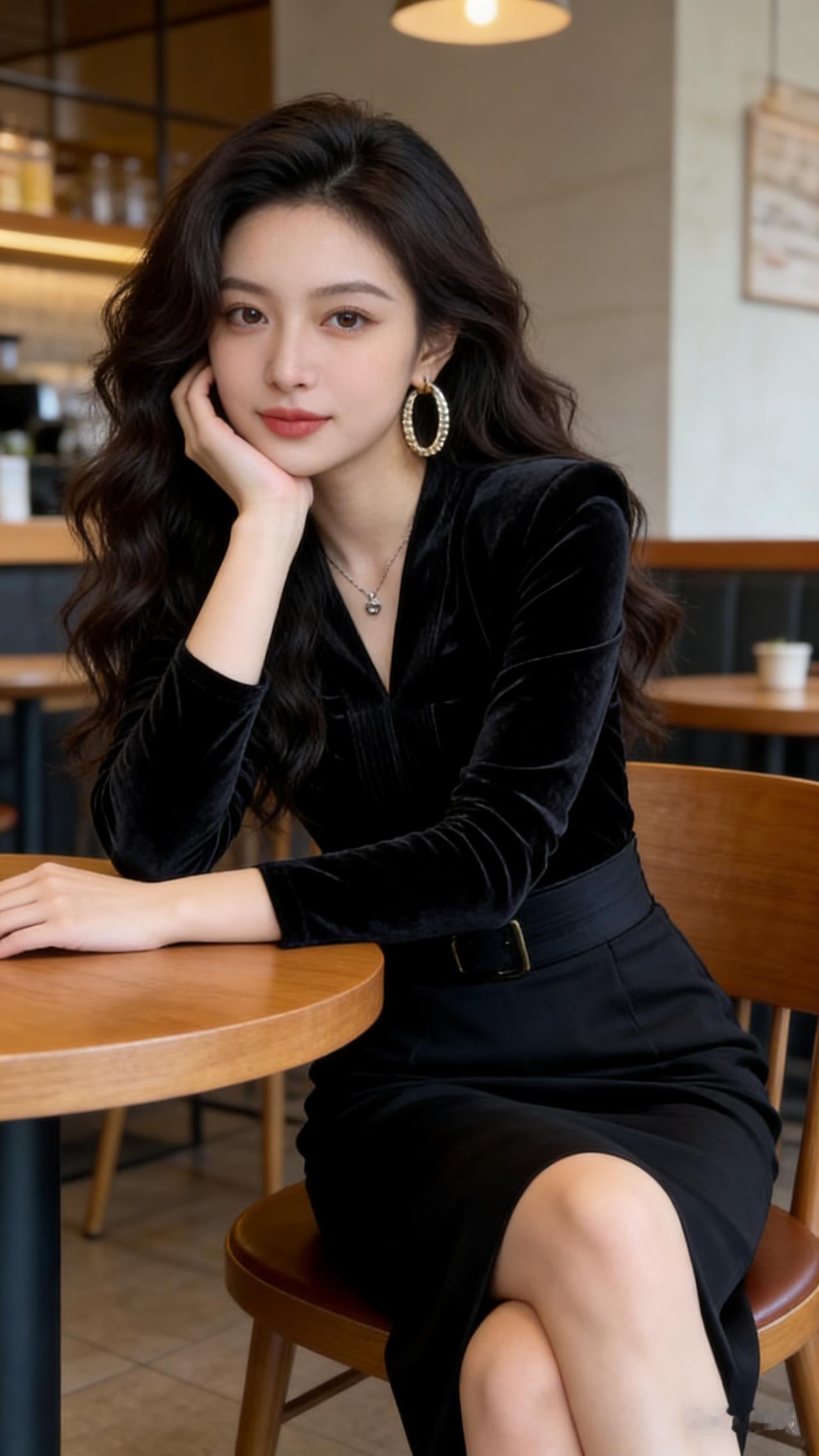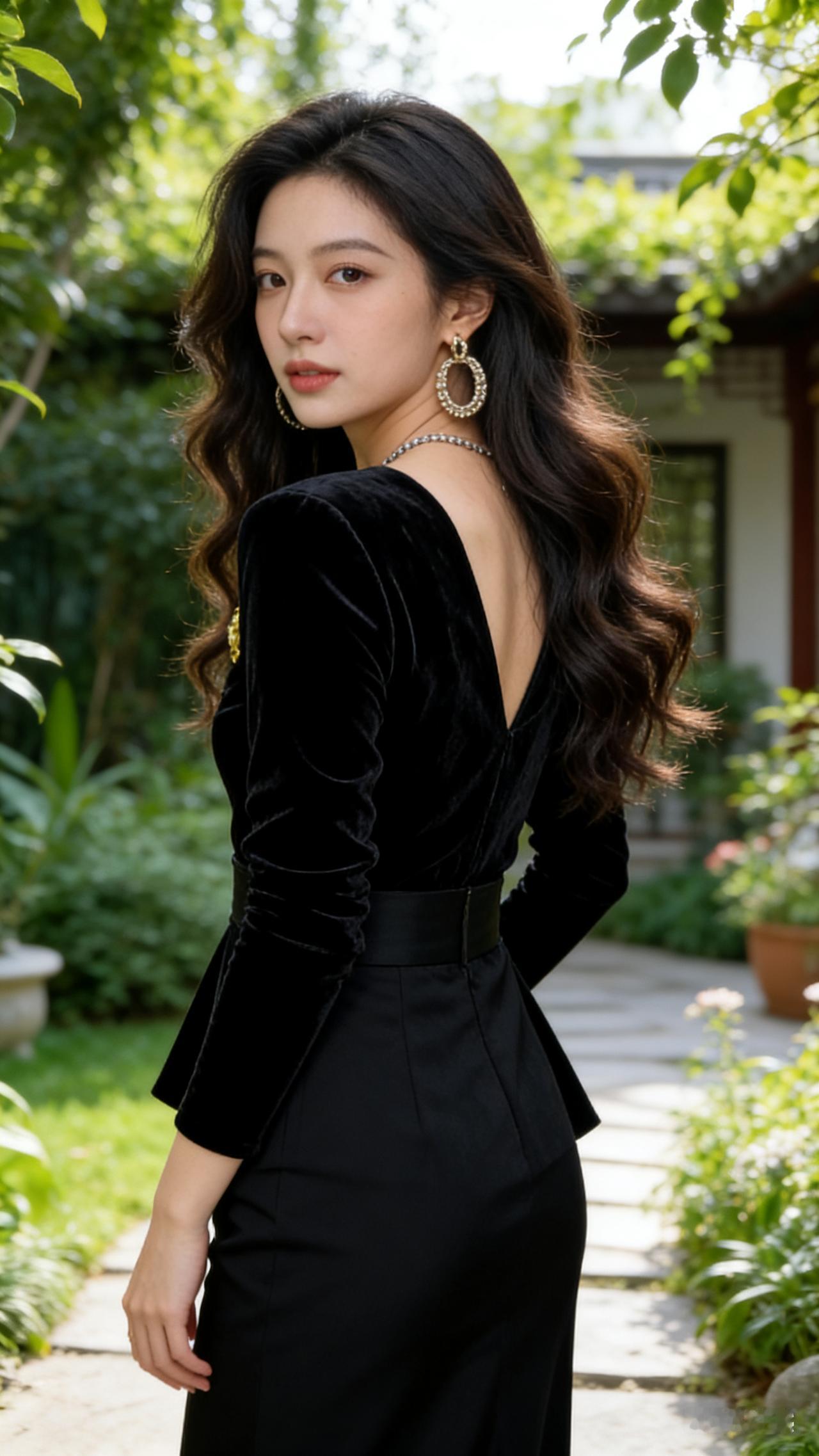 陈瑶黑裙如墨,勾勒出优雅轮廓。指尖轻触,长发拂肩,每一幕都是时光酿成的诗,在古