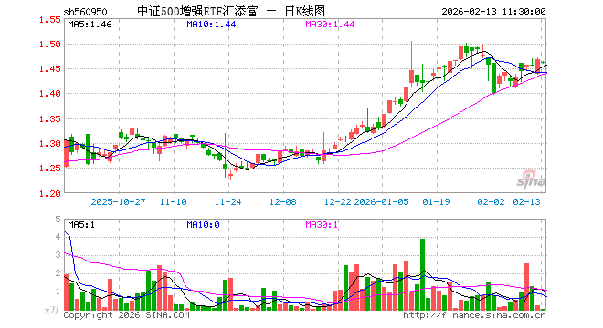 2月13日,截止午间收盘,中证500增强ETF汇添富(560950)跌0.48%,报1.460元,成交额1.68万元。中证500增强ETF汇添富(560950)重仓股方面,西部矿业截止午盘跌2.88%,天山铝业跌2.57%,神火股份跌1.93%,通富微电跌0.33%,睿创微纳涨0.94%,水晶光电跌0.48%,双环传动涨0.40%,东吴证券涨0.21%,璞泰来涨0.49%,深科技涨8.65%。