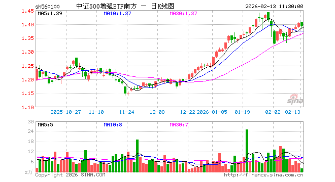 2月13日,截止午间收盘,中证500增强ETF南方(560100)跌1.00%,报1.390元,成交额253.84万元。中证500增强ETF南方(560100)重仓股方面,巨人网络截止午盘涨0.02%,天山铝业跌2.57%,中矿资源跌0.05%,金发科技涨0.58%,先导智能涨0.20%,西部矿业跌2.88%,中国卫星跌0.44%,豪迈科技跌4.28%,金风科技跌0.48%,兴森科技涨1.14%。