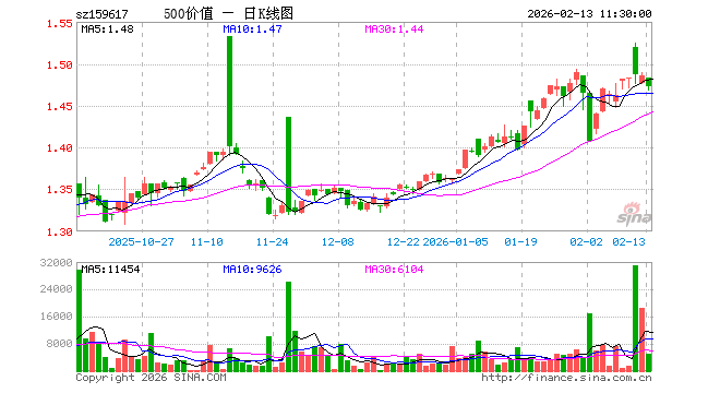 2月13日,截止午间收盘,中证500价值ETF华夏(159617)跌0.94%,报1.472元,成交额72.76万元。中证500价值ETF华夏(159617)重仓股方面,太阳纸业截止午盘跌0.29%,鄂尔多斯跌3.16%,桐昆股份跌3.33%,九州通涨0.00%,浙江龙盛跌1.56%,雅戈尔跌1.48%,梅花生物跌0.54%,韵达股份跌0.73%,长沙银行跌0.40%,白云山跌0.08%。