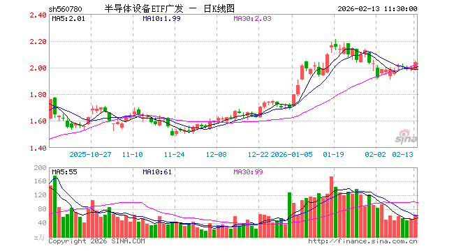 2月13日,截止午间收盘,半导体设备ETF广发(560780)涨2.05%,报2.039元,成交额1.29亿元。半导体设备ETF广发(560780)重仓股方面,北方华创截止午盘涨3.39%,中微公司涨0.77%,拓荆科技涨3.86%,长川科技涨2.50%,沪硅产业涨0.24%,华海清科涨2.47%,中科飞测涨2.60%,南大光电涨0.89%,安集科技涨0.09%,芯源微涨3.64%。
