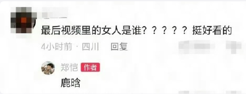 事情是这样的:郑恺发了个看比赛的vlog,结尾苗苗反戴帽子出镜,挺好看一姑娘。有眼尖的网友问:“这女生谁啊?” 郑恺估计是脑子一抽,秒回俩字:“鹿晗。”