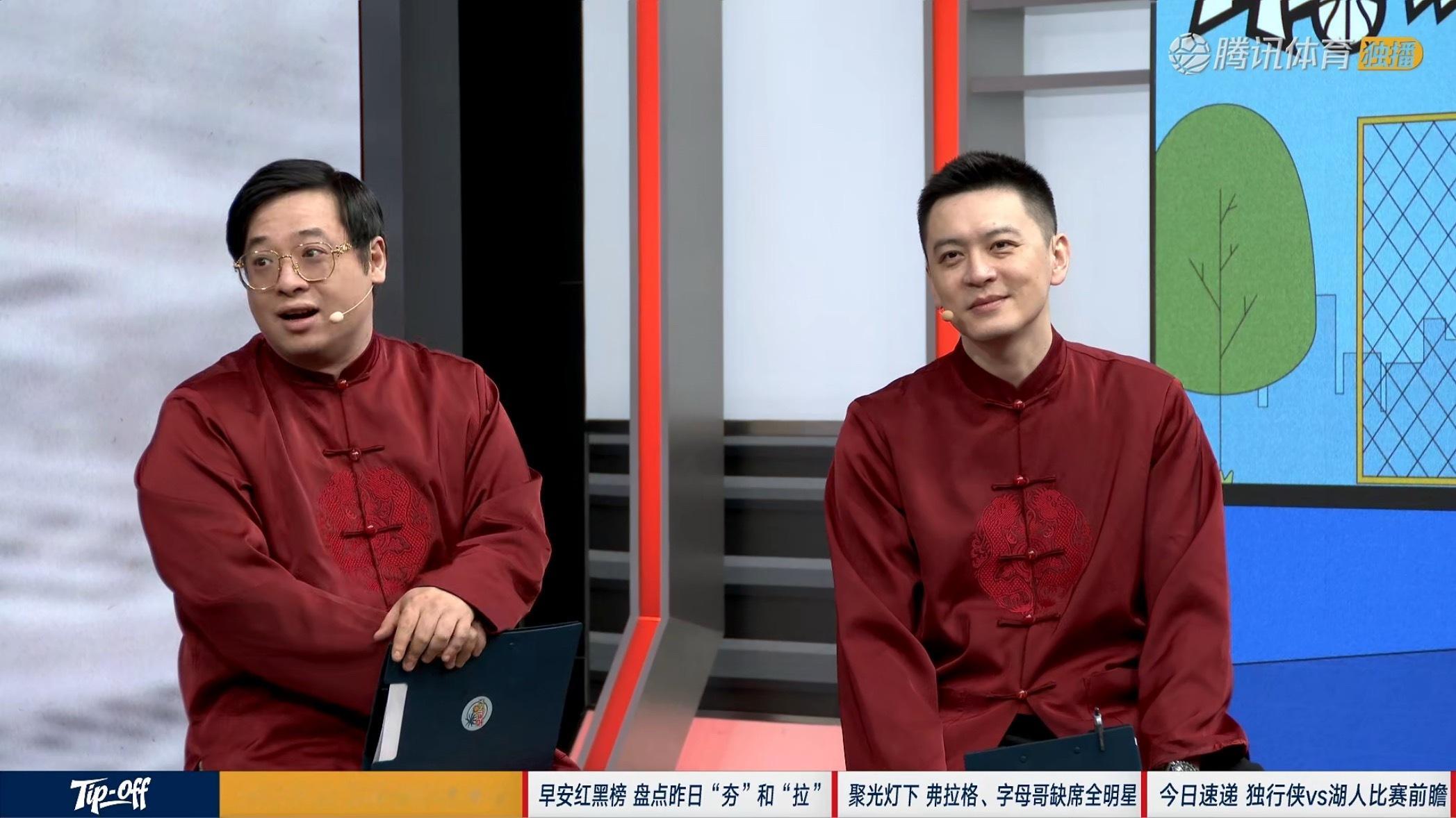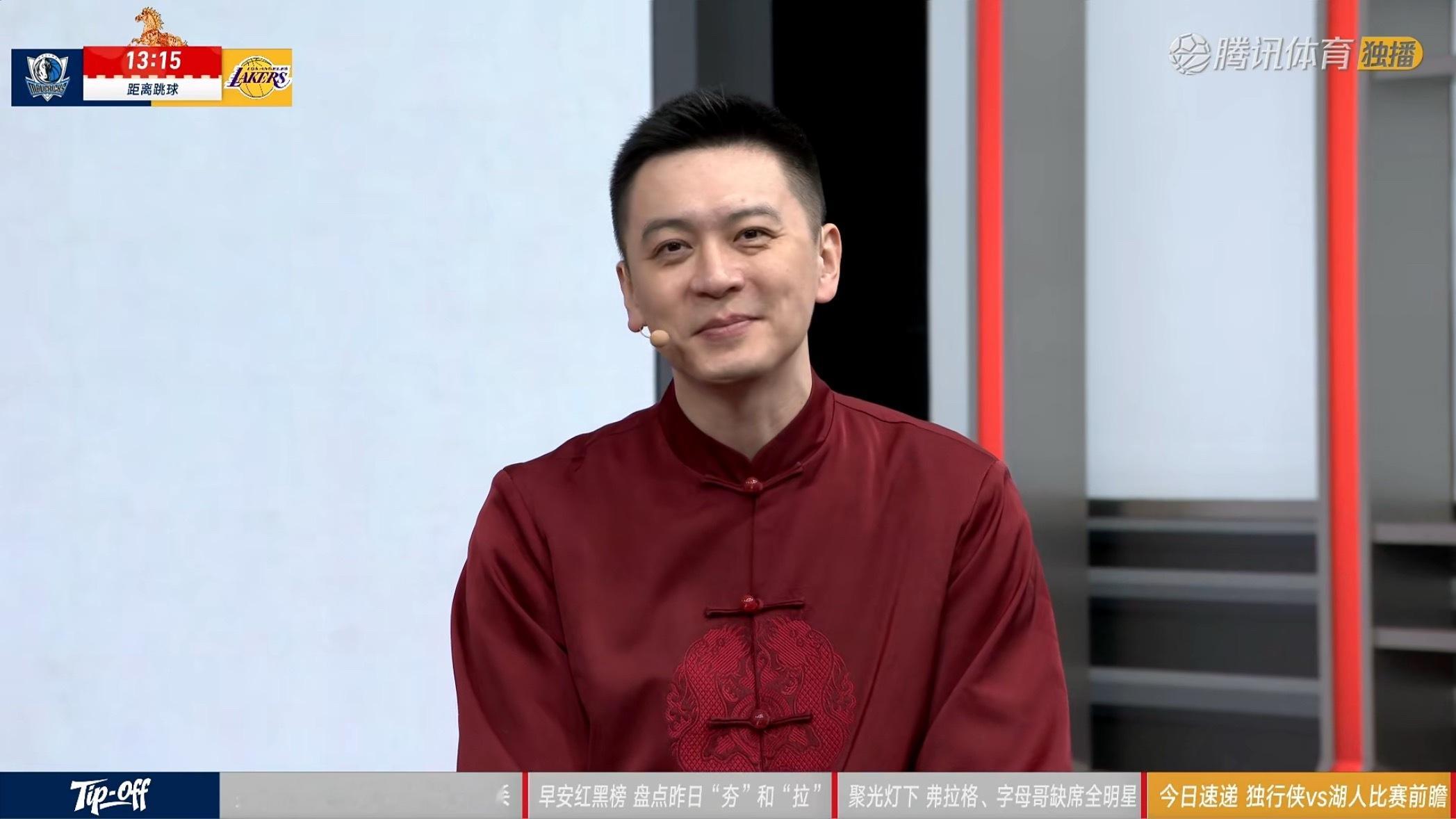 杨导今日身穿红色唐装解说新造型,真喜庆