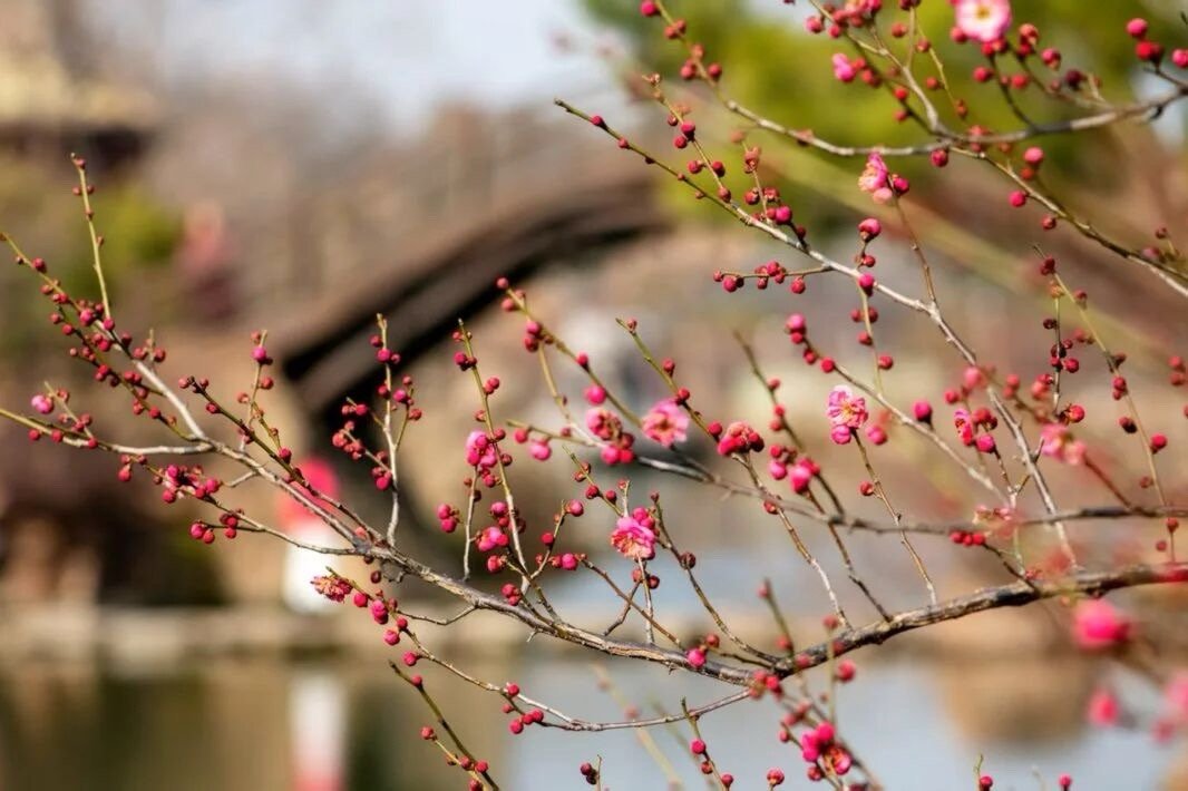 热气腾腾的中国年瘦西湖湖上梅林依水而建,曲水绕梅林,亭台映梅影,百余品种的梅花错落分布。初绽的春梅或粉或白,缀于苍劲枝桠,淡淡的梅香随湖风漫溢,疏影横斜间,尽显江南早春的婉约诗意。第一批回村的人已经出片了春节期间,“湖上梅林”将迎来最佳赏期,万千梅花盛放成海。扬州