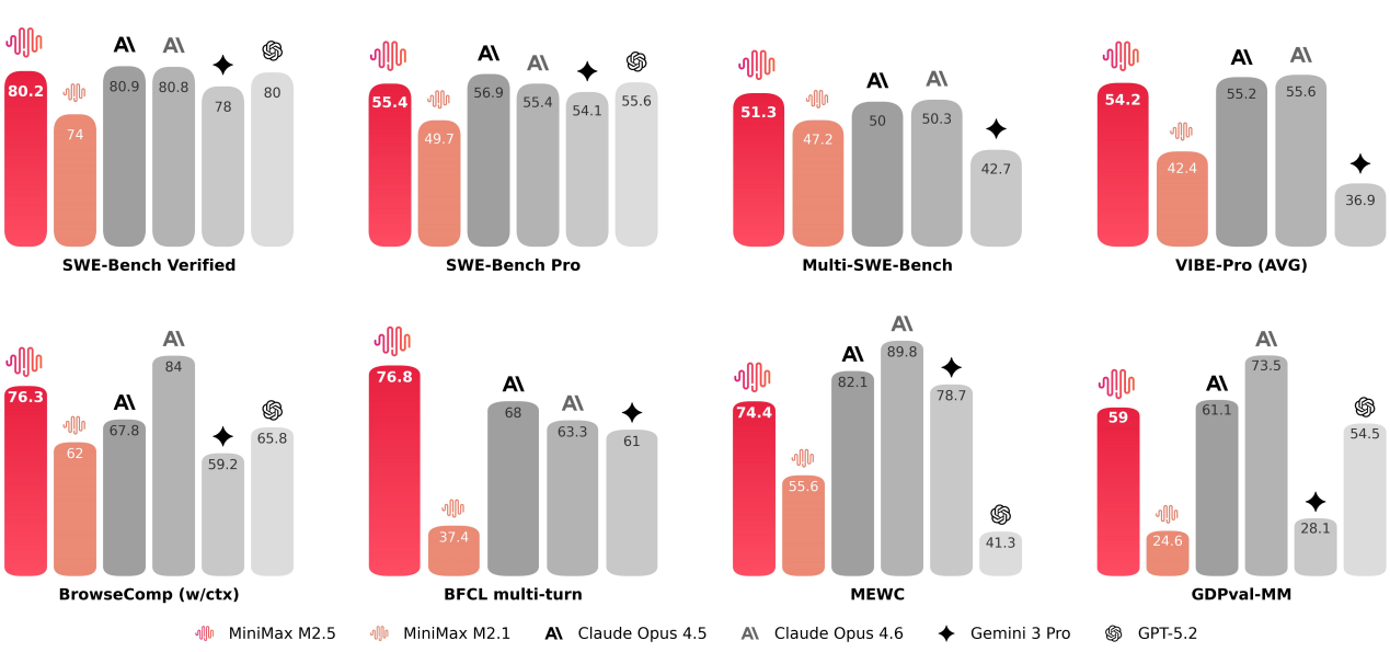 上证报中国证券网讯(记者孙小程)2026年春节前夕,MiniMax正式上线新一代文本模型MiniMaxM2.5,参与到大模型厂商密集上新的“春节档”中。在编程能力方面,M2.5在权威榜单SWE-BenchVerified得分80.2%、Multi-SWE-Bench得分51.3%,较上一代显著提升;在Multi-SWE-Bench等多语言复杂环境中超越Opus4.6。模型展现出“原生Spec能力”——在编码前主动拆解架构与功能规划,更接近真实架构师的工作模式。