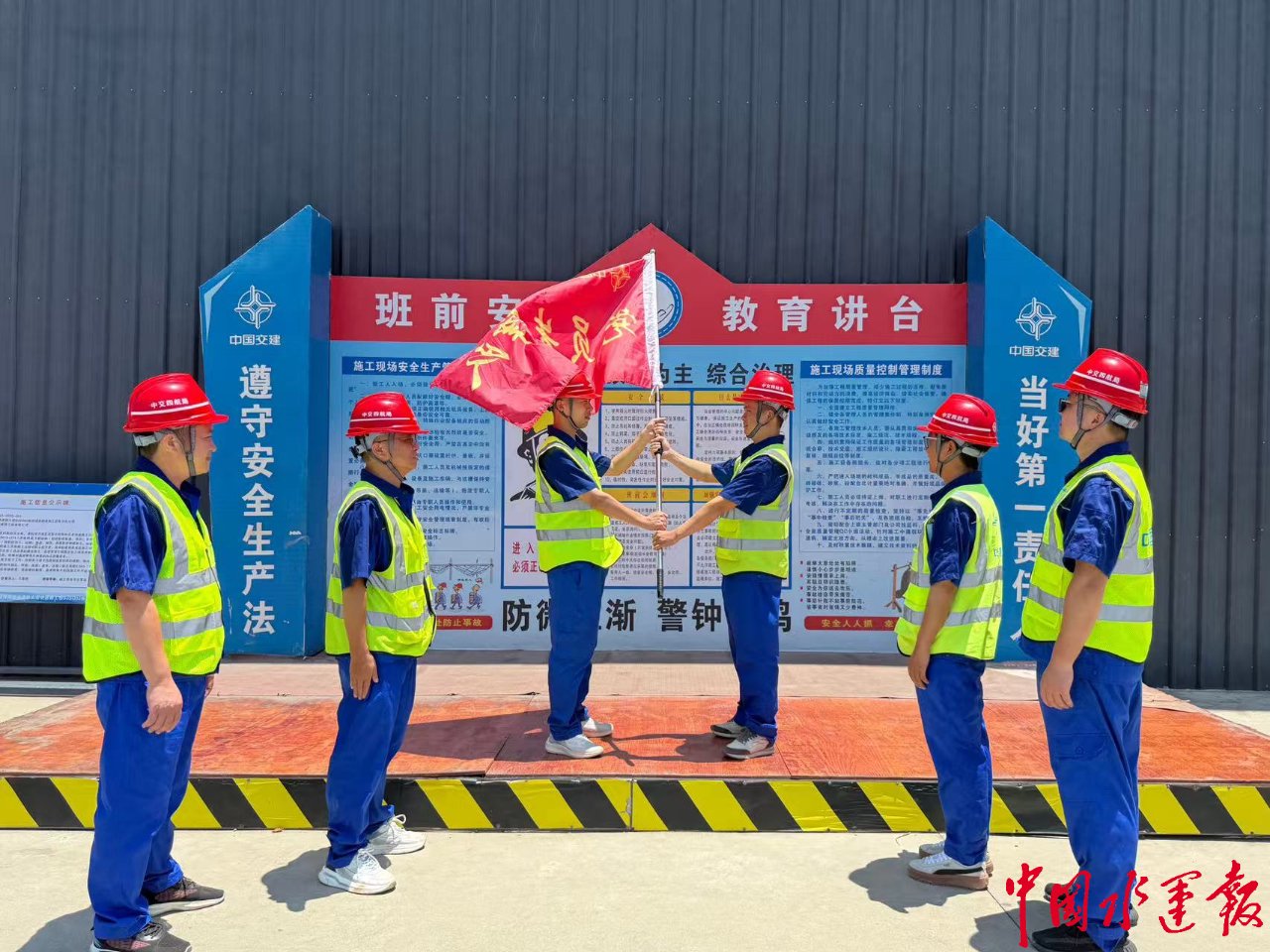 中交四航局温岭项目党支部“先锋旗手”授旗(中交四航局总承包公司供图)