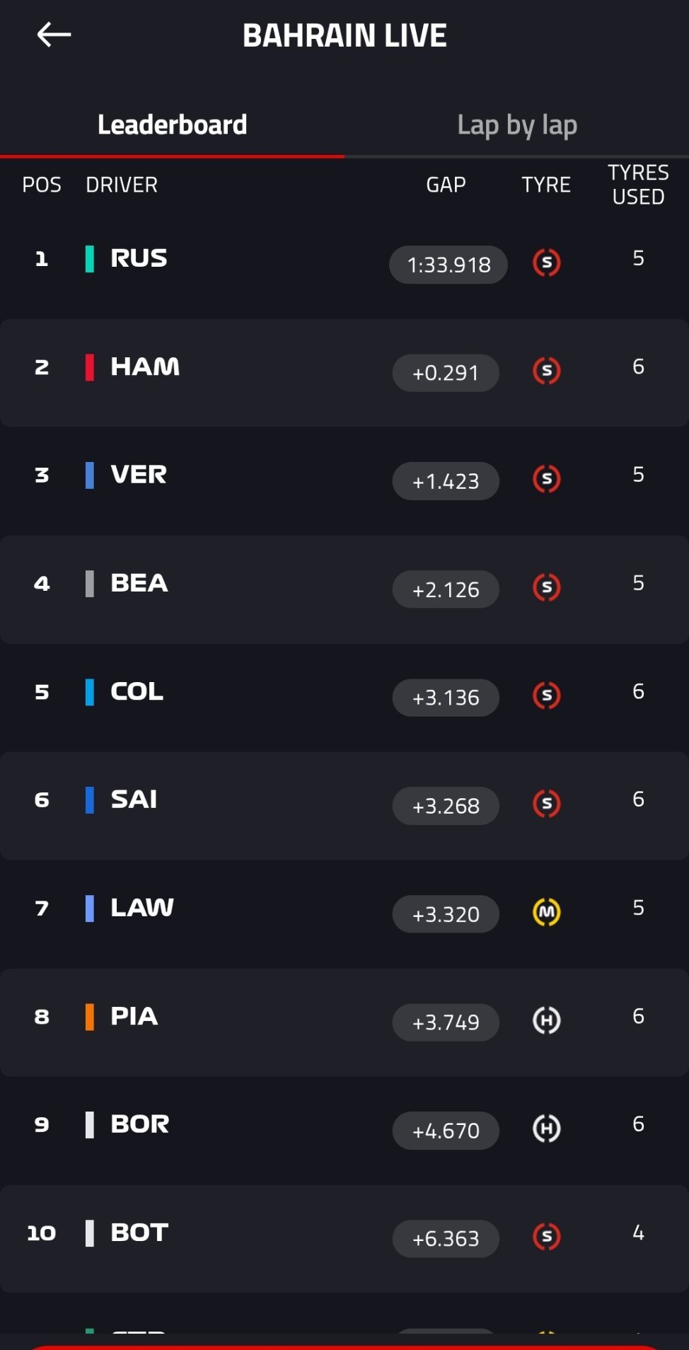 拉塞尔再次刷新F1巴林季前测试第一轮的全场最快单圈1:33.918F1赛车202