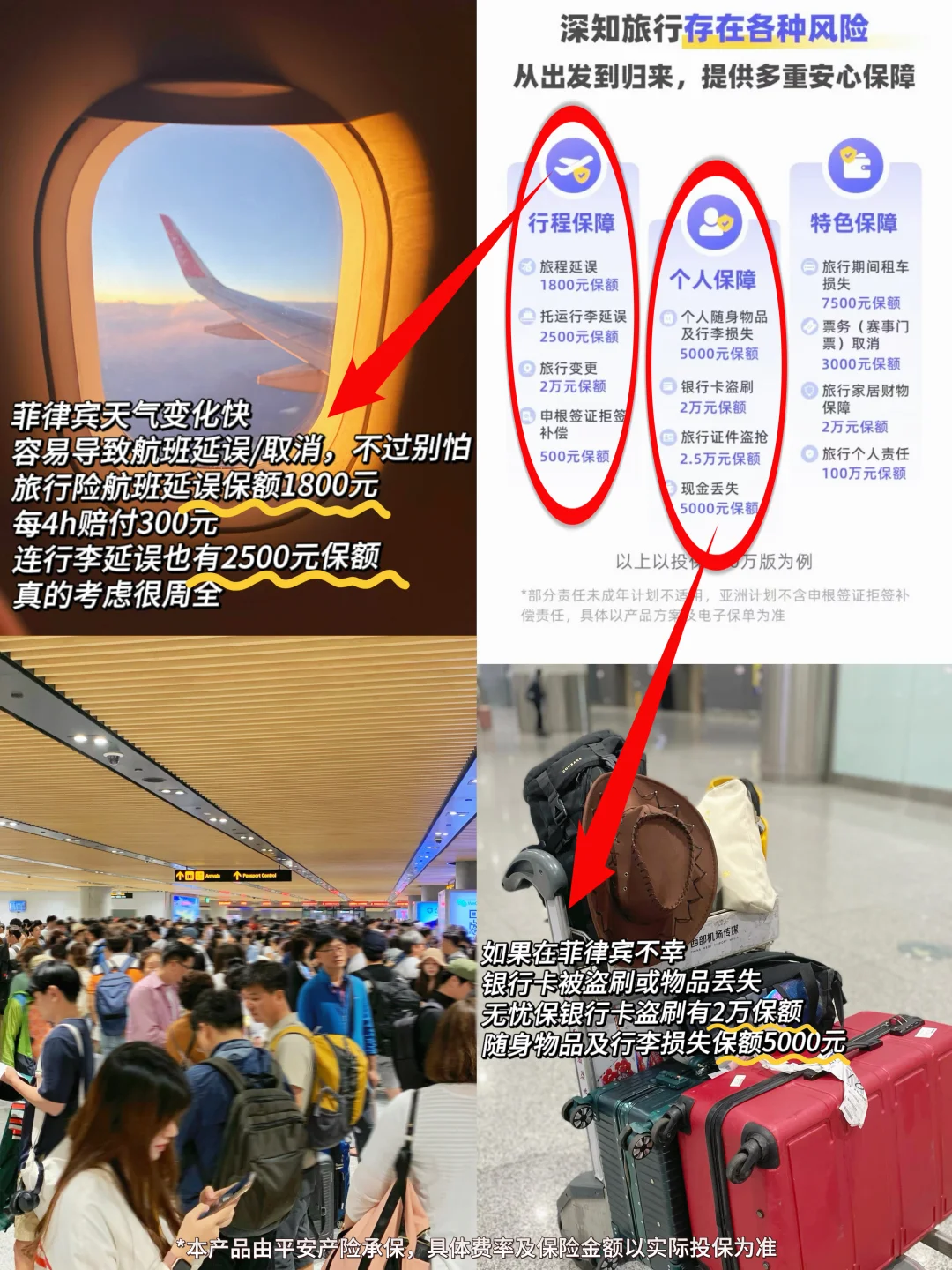 ❹境外保险:菲律宾目前还不是很成熟的旅游城市,一定要安排【⽆忧保·境外旅⾏险】,玩得超安心‼️
