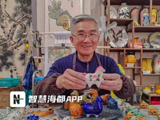 今年恰逢马年,吴康为师傅围绕马这一吉祥题材,精心创作了一百多个原创纯手工陶瓷作品。海都记者在吴师傅的大厅看到,大厅摆满了各种陶瓷作品,而这些马都是采用釉下彩工艺,“马上成功”“马上有钱”的美好寓意,搭配“福马袋”的谐音,让这一作品成了爱好者们争相购买的热门之选。还有“青梅竹马”马摆件,青色的头发设计别具一格。“和协马”上绘有荷花,寓意和谐美好,同样备受青睐。