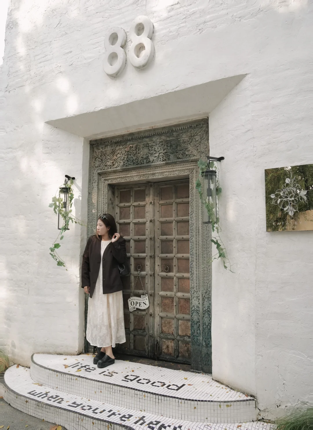 如大家所说 比较偏远 藏在巷子深处 周边像本地人的别墅🏠 - 整体工业和法式的融合 不会太矫情又很自然 咖啡不错 松饼🥞一般 - 人不多 很安静 适合时间很多行程轻松 想找个地方歇一下的 门口的醒目88+地砖+光斑+门 比较神秘好出片 其他地方一般般可能旧了的缘故 ——— 📍Ittha Boutique Cafe 88 Soi Punnawitthi 33 alley, Bang Chak,Phra Khanong,Bangkok 08:00-17:00
