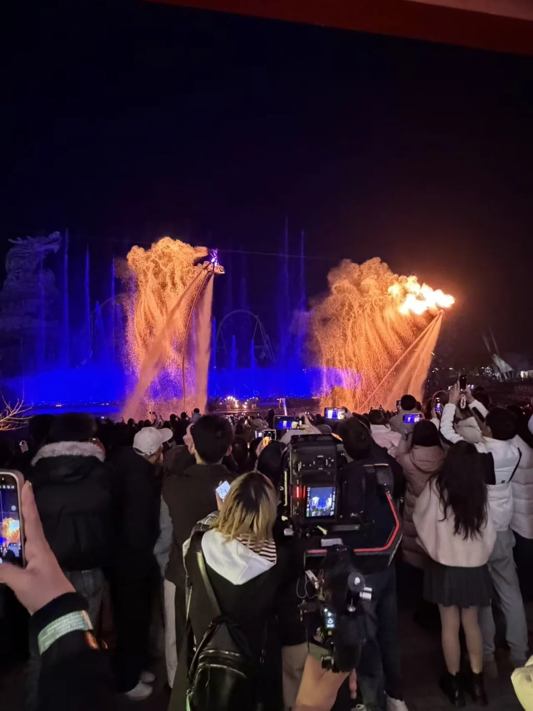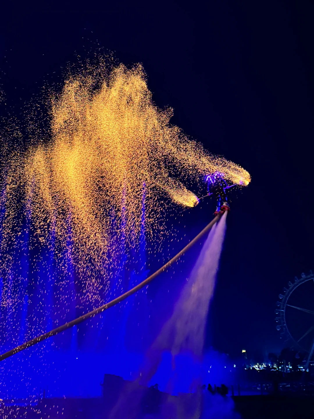 ✔️大湖飞天花火秀 夜光版水舞+火花特效,湖面倒影如诗,夜拍封神