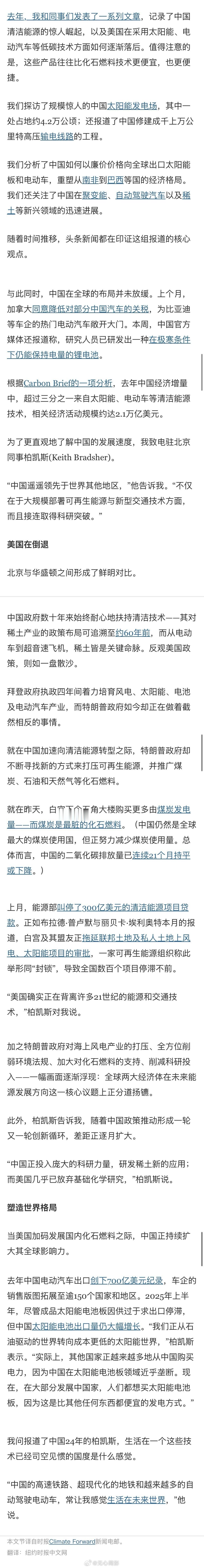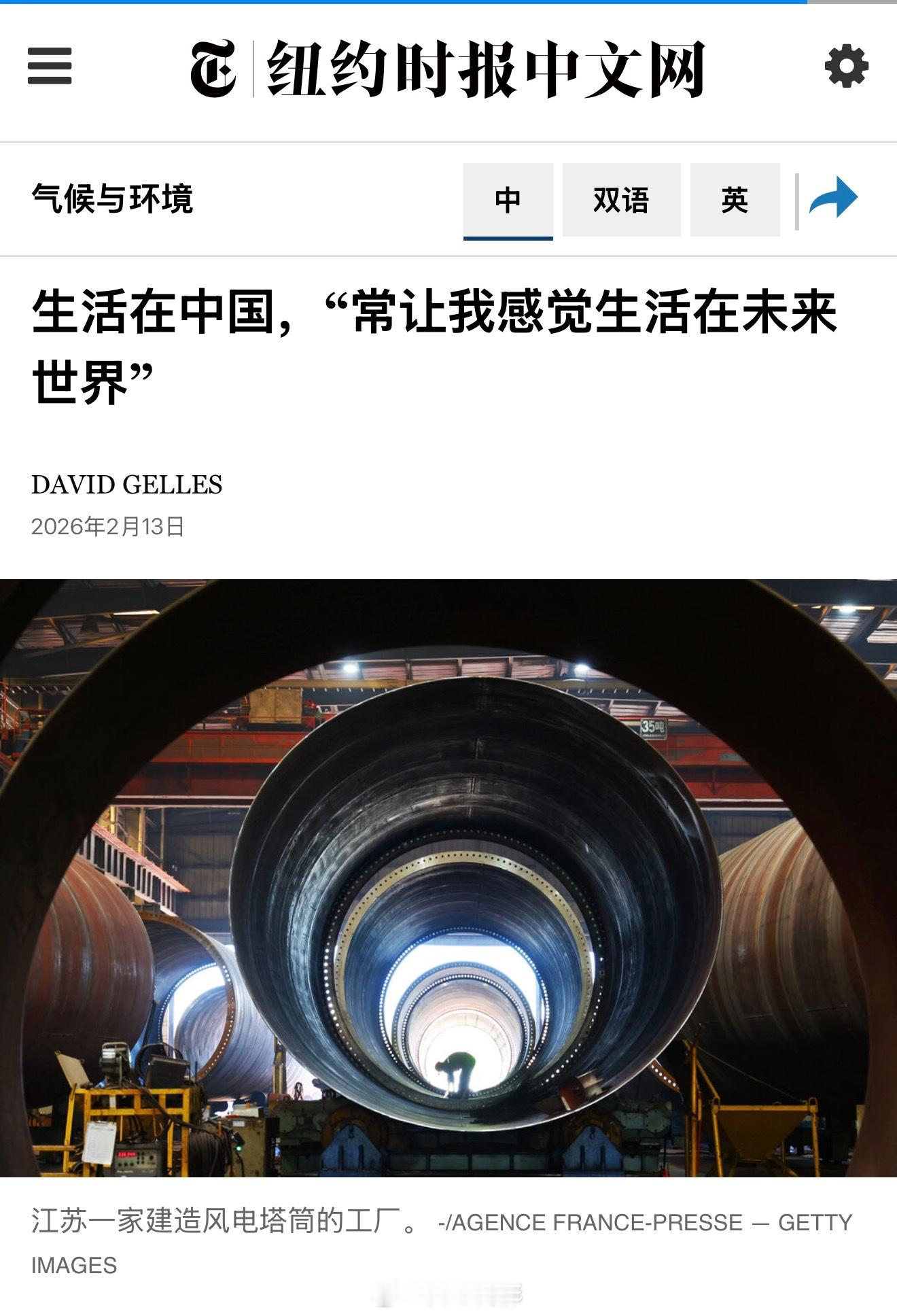 美国《纽约时报》:生活在中国,“常让我感觉生活在未来世界”。核心内容:中国清洁能