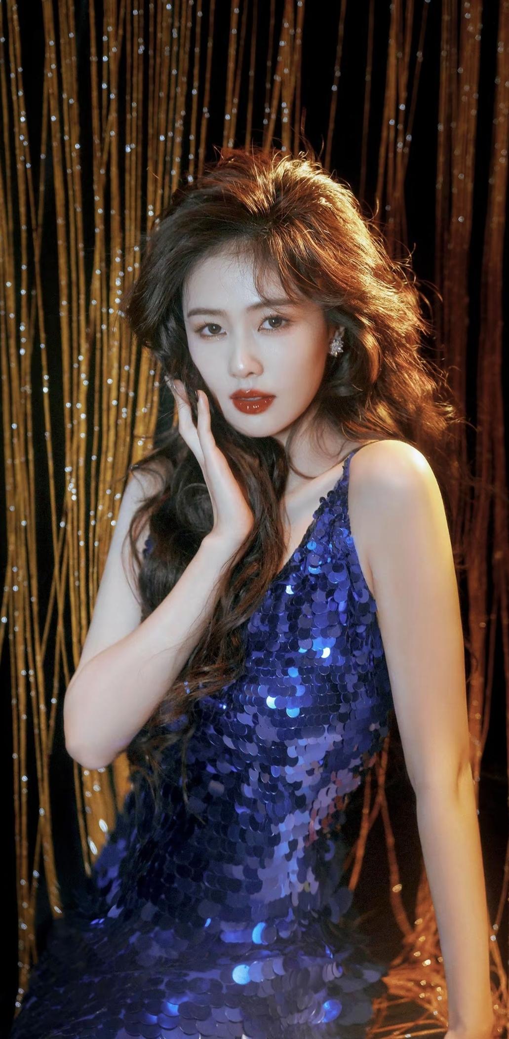 白鹿的蓝色战袍,把“贵气”两个字焊在了身上,这才是女明星该有的样子[赞]红唇与蓝