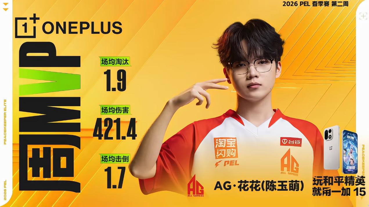 虎扑02月13日讯2026PEL春季赛第二周周决赛,恭喜成都AG-花花(陈玉萌)蝉联2026PEL春季赛周决赛MVP!