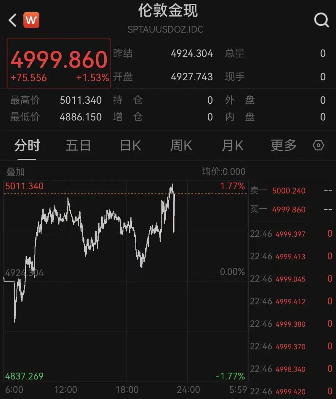 黄金与白银集体拉涨,截至发稿,现货黄金涨幅超1.5%,盘中一度站上5010美元/盎司,现货白银涨超3.5%。