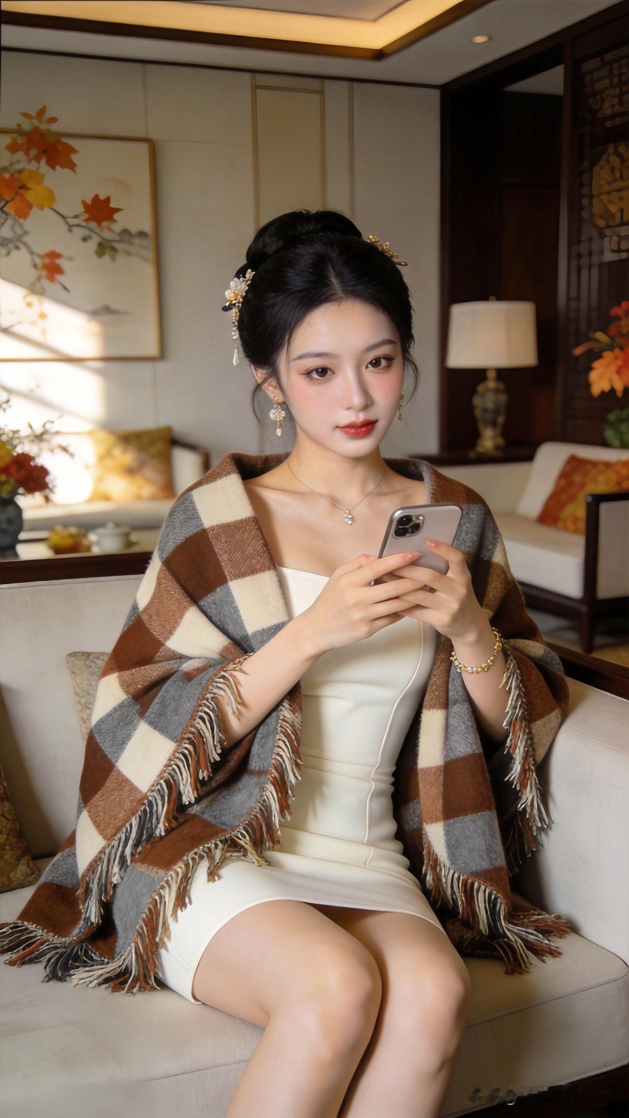 秋日穿搭指南:温暖毛衣+格纹披肩,时尚又舒适!🍂👗🧣女生如何穿搭看起来时尚更有品味呢 花影摇曳,美人如画。