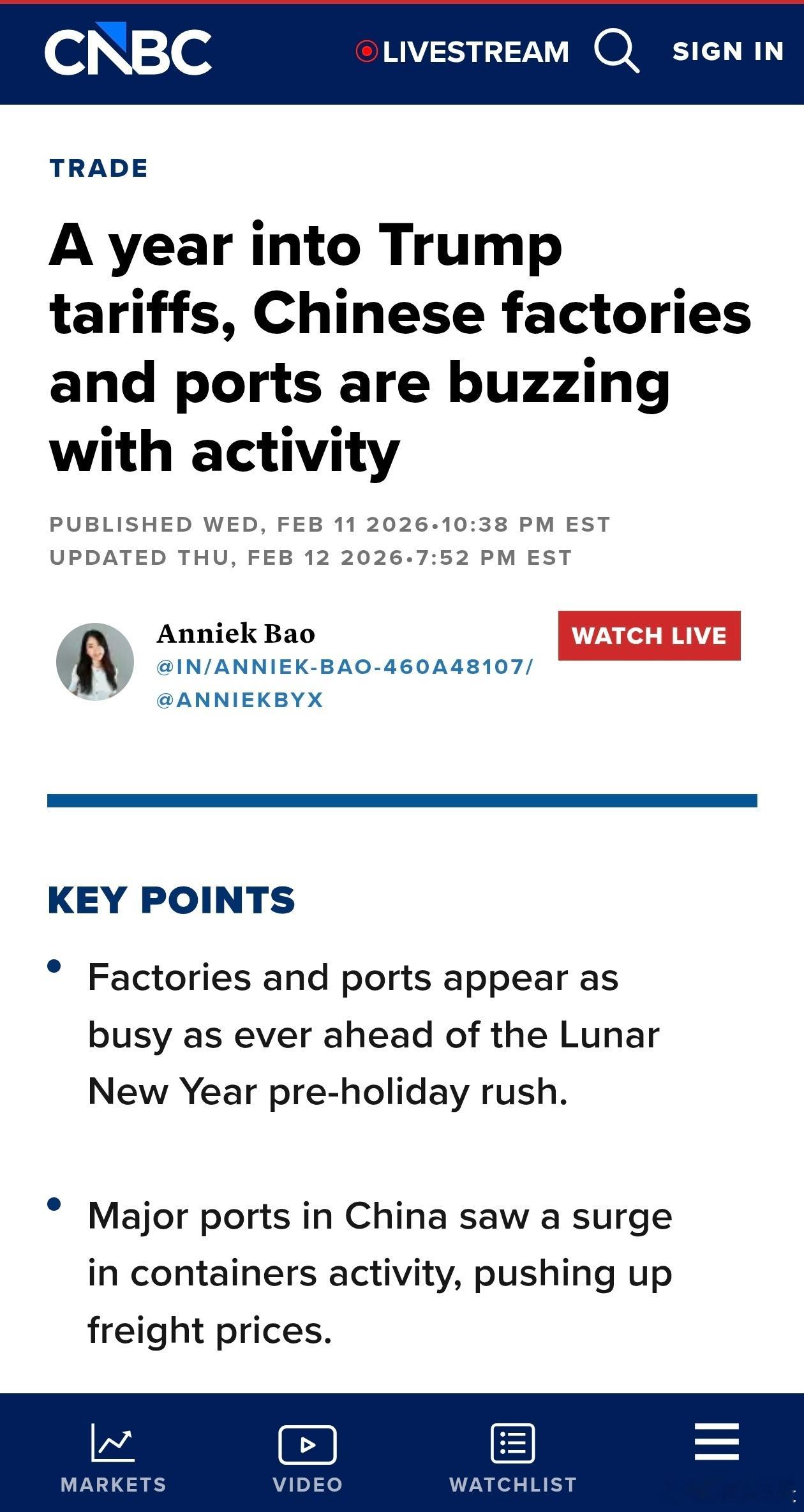 美媒:抵住特朗普攻势,中国工厂越挫越勇据美国财经媒体《CNBC》报导,每逢农历新