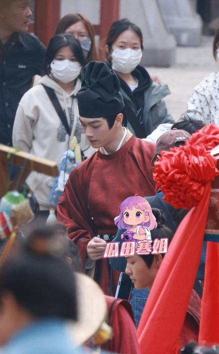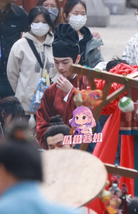 许凯穿古装拍戏偷吃道具 许凯身穿古装婚服,造型看起来蛮春风得意的。但是开拍前偷抓