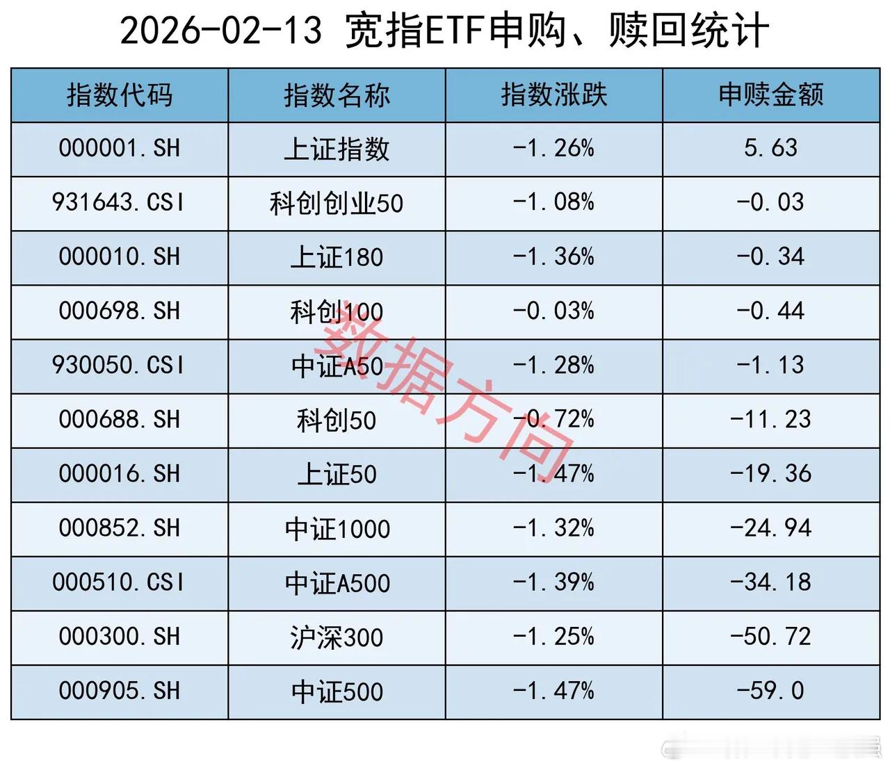 中证iconA500指数(-34.18亿)、中证1000指数(-24.94亿)、上证50指数(-19.36亿)、科创50指数(-11.23亿),净赎回都在10亿之上。