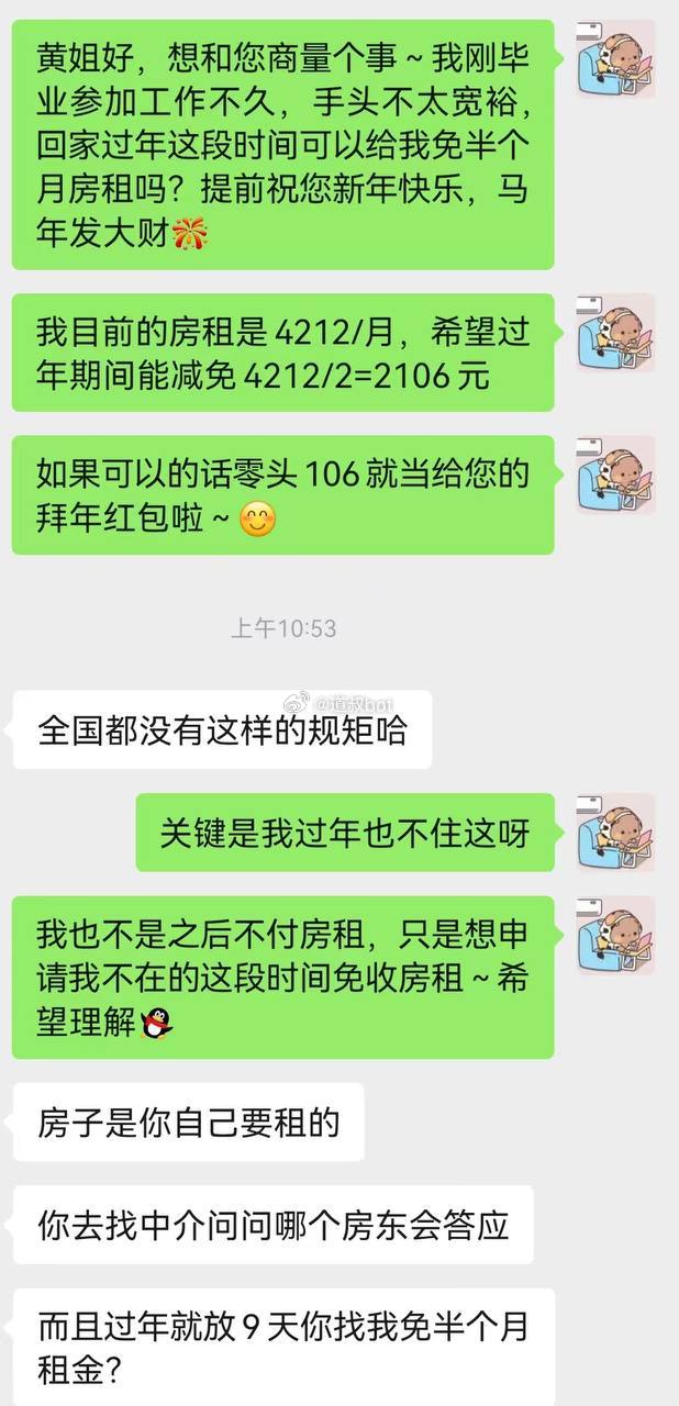 刚工作过年期间让房东免半个月房租都不肯,我要曝光她!