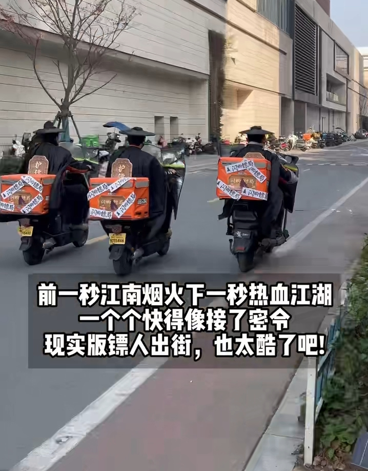 杭州街头偶遇镖人杭州街头惊现镖人小队 杭州街头秒变江湖!黑衣斗笠的“镖人”小队飒爽出街,步伐快得像接了密令,连外卖小哥都忍不住驻足围观,这波城市营销也太会玩了!