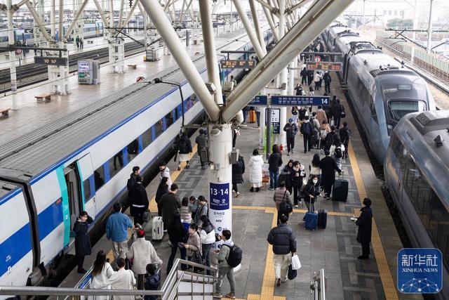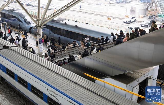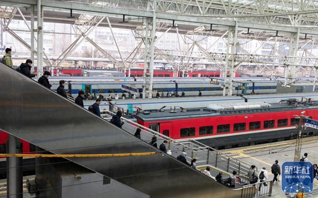 2月13日,乘客在韩国首尔火车站乘车。