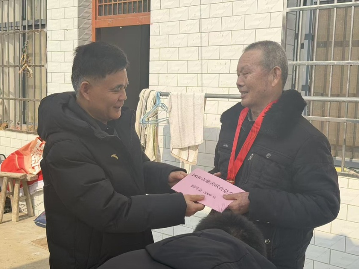 爱迎新春佳节,情暖革命老区。为迎接中国共产党建党105周年、红军长征胜利90周年,连日来,河南省慈善联合总会领导班子成员分赴安阳林州、平顶山宝丰、信阳新县等全省8个革命老区,开展2026年“寒冬送温暖”走访慰问活动,为抗美援朝老军人、老红军遗属、烈士后代、困难老党员等送上慰问金、生活物资与新春祝福,将党和政府的关怀、慈善组织的温情精准送到困难群众的心坎上。