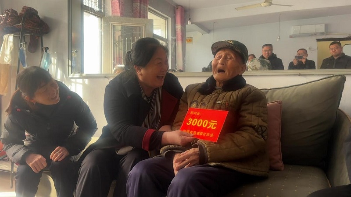 阳光灿烂,笑声朗朗,在林州市任村镇石岗村,当河南省慈善联合总会会长周春艳送上装有3000元慰问金的红包,以及暖心的新春祝福,94岁的抗美援朝老军人李艮山笑得合不拢嘴,温暖的场景被定格成新春里最动人的画面。