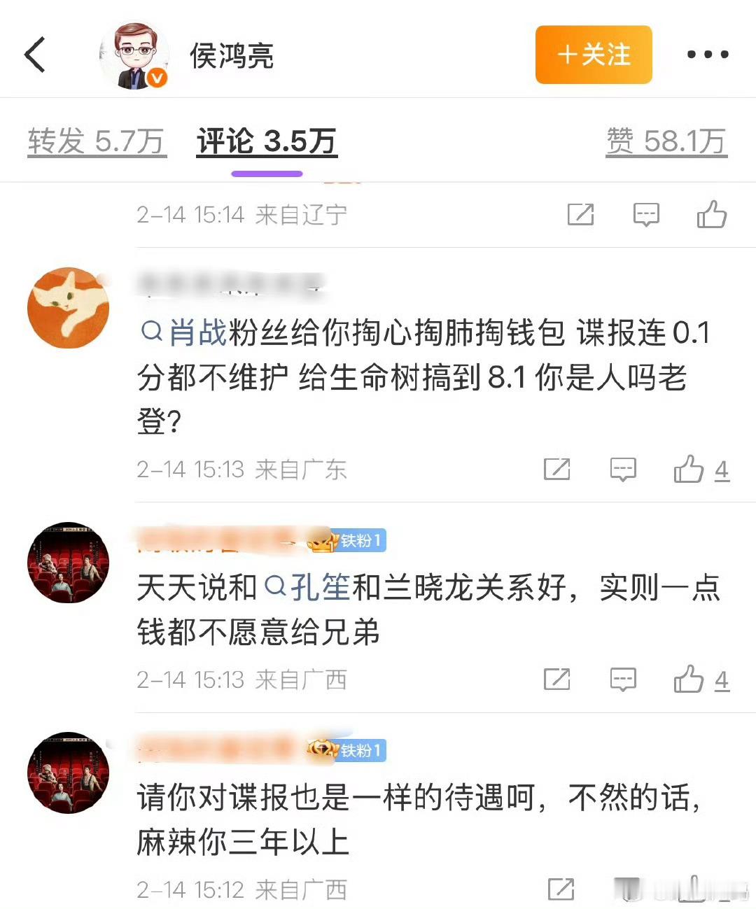 生命树开分后,侯鸿亮评论区又沦陷了我笑的肚子好痛,感觉侯请回来一群大爷
