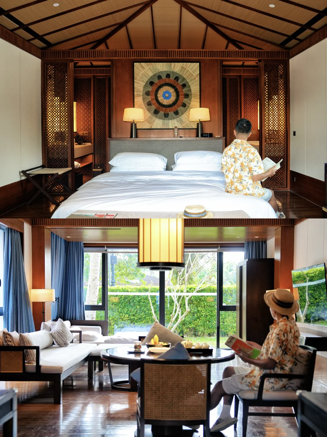 建议住石梅湾艾美度假酒店,位于石梅湾C位,距其他景点都很近,方便游玩,酒店坐拥6公里银白沙滩,热带雨林风,东南亚度假既视感满满~我这次住的是礁石泳池大床房,房间直面大海,视野敲👍自带泳池,私密性拉满,酒店步行3分钟可到海滩,无边泳池、地平线海景餐厅、丰富的亲子游玩体验,一站式解锁海岛度假,连住2天都不想走✌️