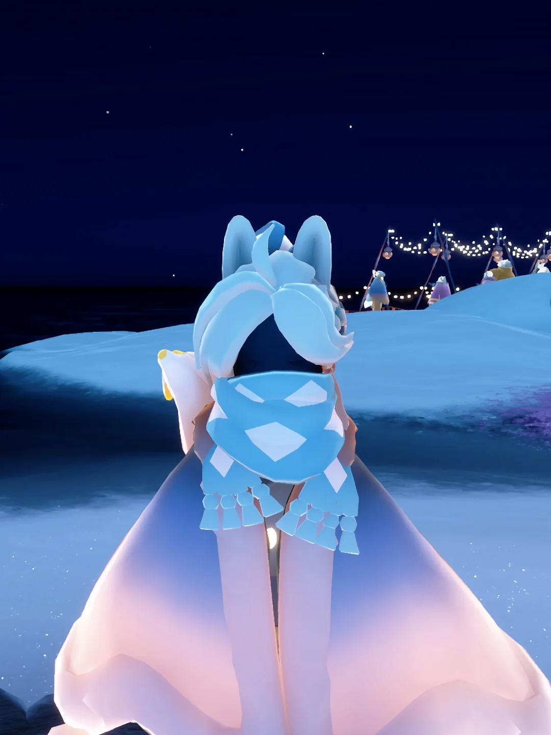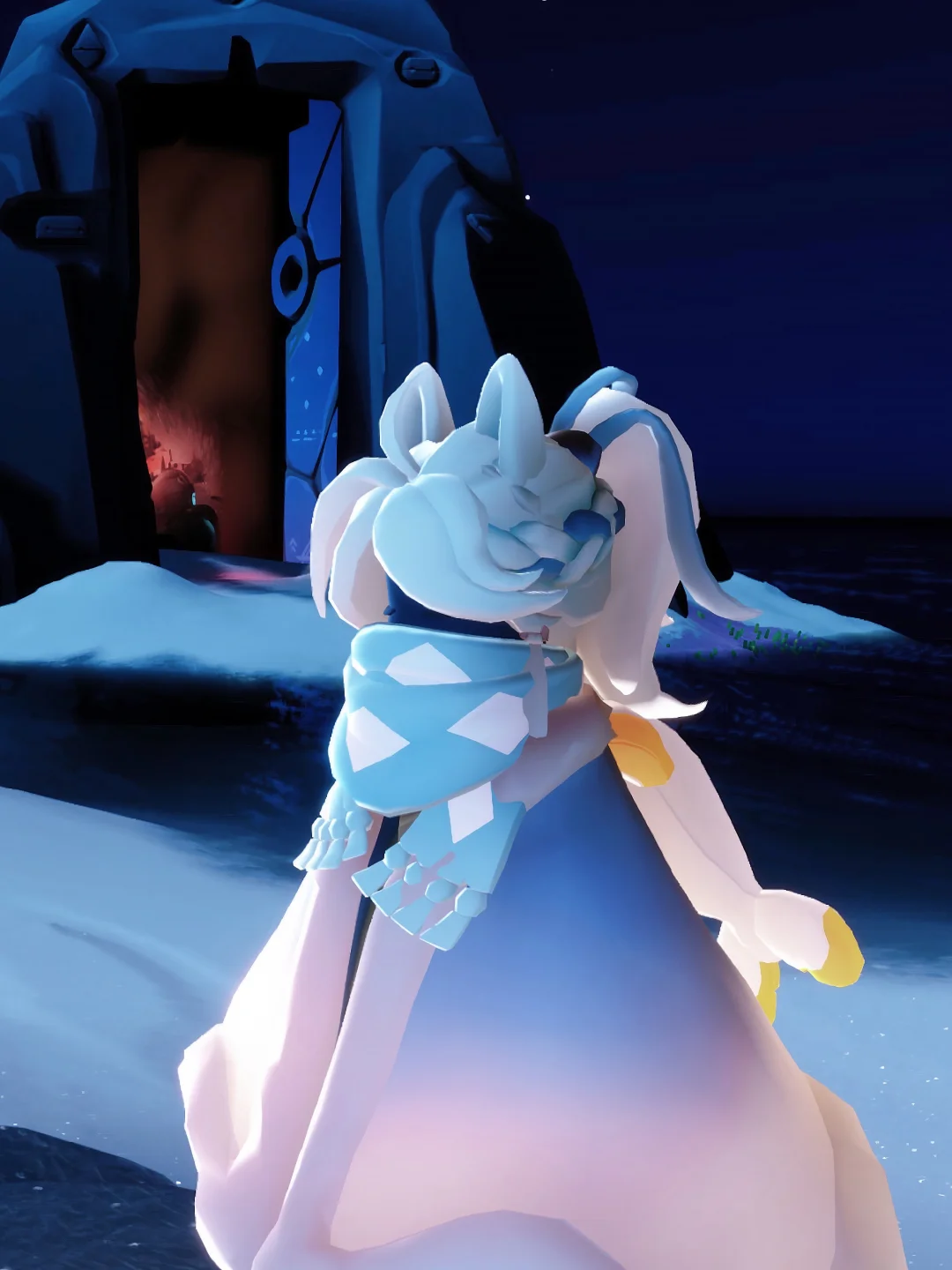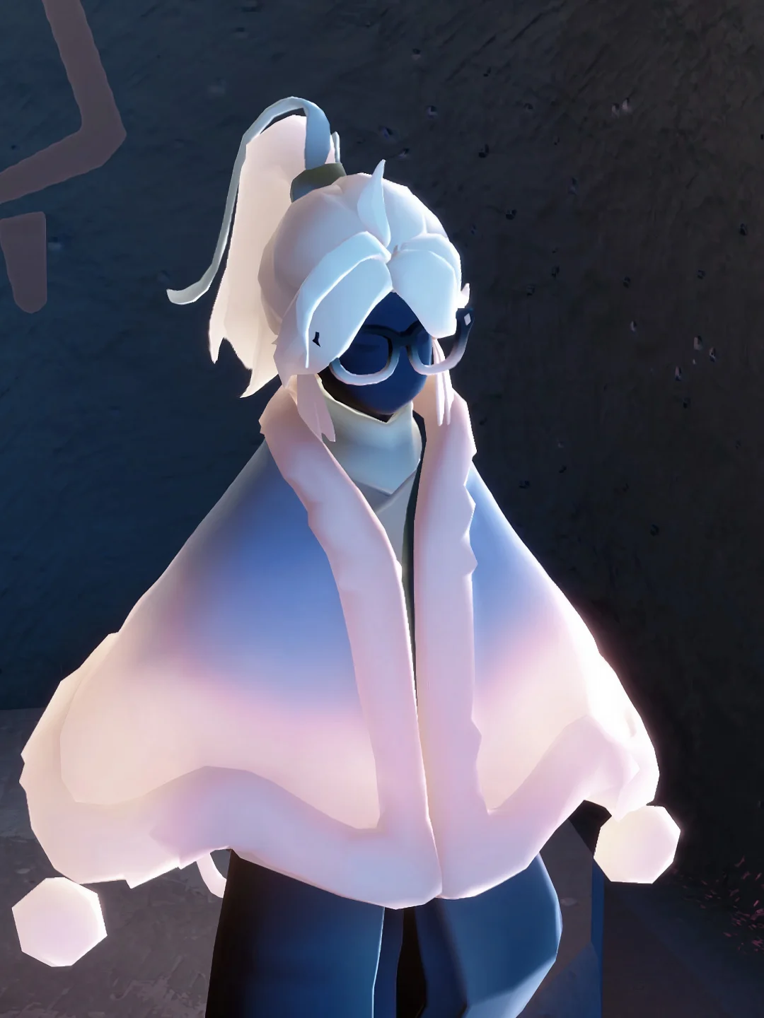 马年新礼包马尾染色是青色➕蓝色 耳朵是姆明季的礼包 蓝色围巾是徽章 拾光季毕业礼眼镜白色➕白色 圣诞节瑞雪斗篷也是白色➕白色