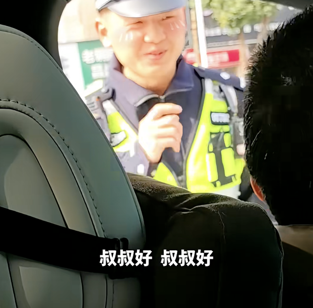 突如其来的“见家长”,让交警小哥瞬间“娇羞”脸红,不好意思地说了“叔叔好”。