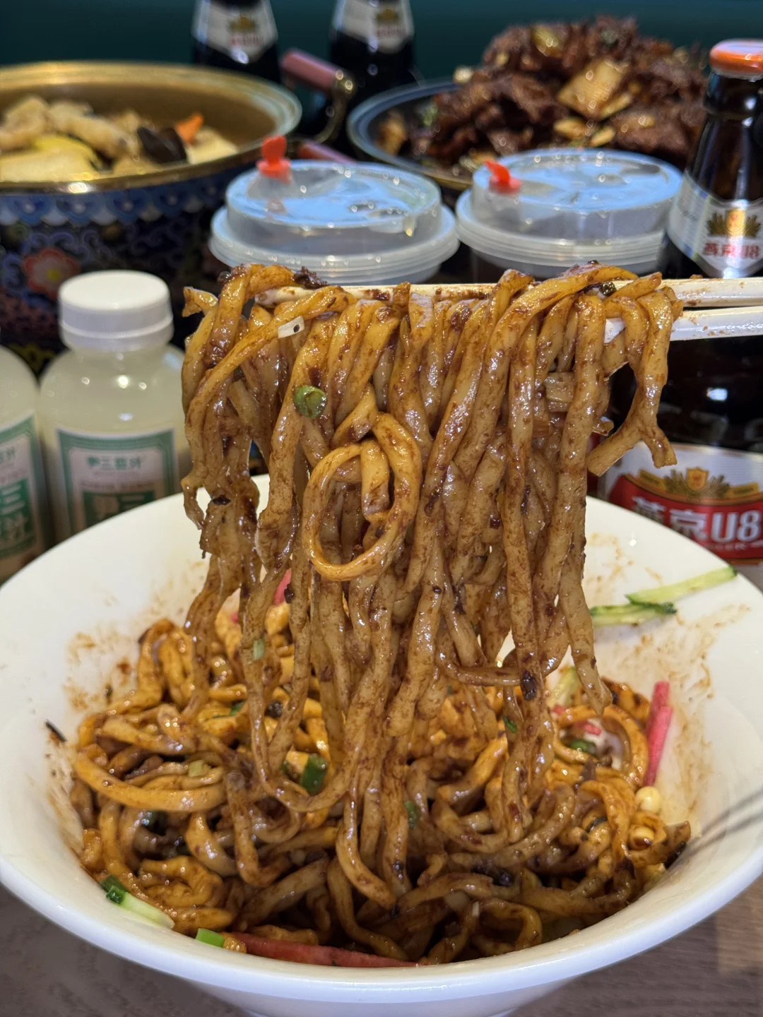 🍜 炸酱面:免费续面 + 无限加腊八蒜,娃抱着碗 "吸溜" 不停