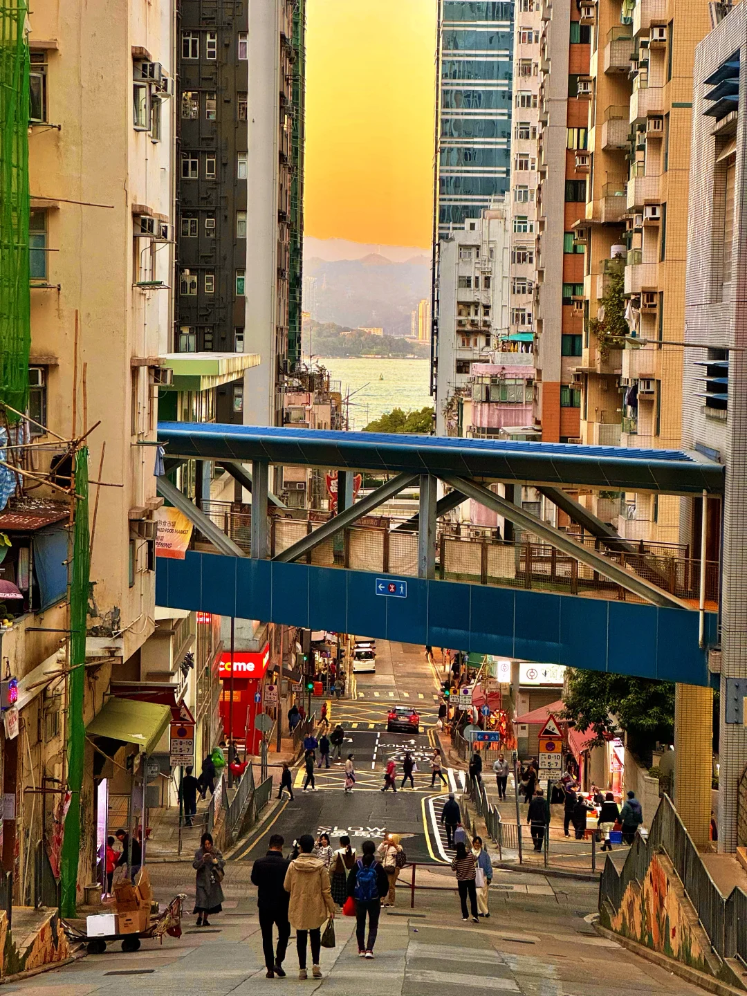 P10:在图9的地方,再往前走到一个楼梯口,下楼可以拍到维港天际线