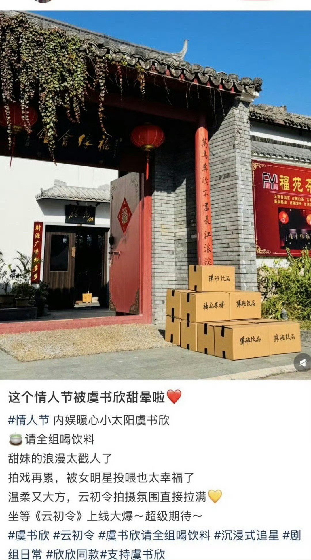 虞书欣情人节请云初令全剧组喝饮料。又被这个欣欣暖到了,太甜了虞书欣云初令