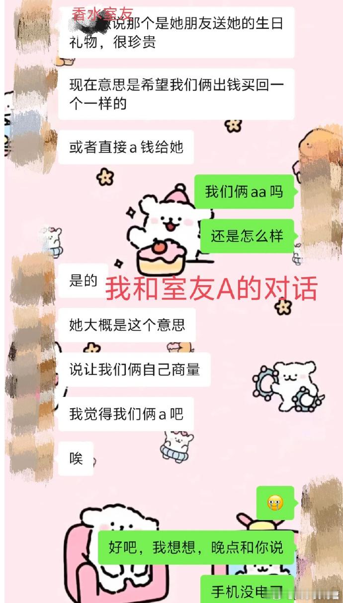室友打碎了另一个室友的香水要我a钱我该a吗❓ !!!