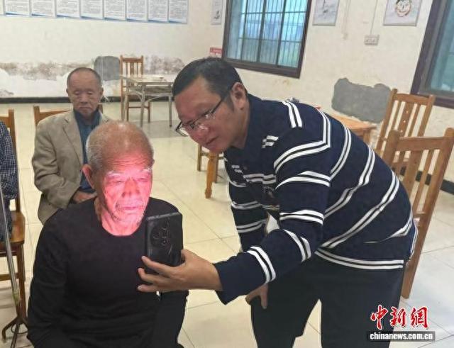 新田县社保中心工作人员到敬老院开展“上门办”服务。蒋军君摄