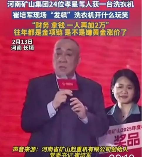 这一幕直接炸上热搜!全网都在喊:这样的老板请给我来一打! 现场鸦雀无声,崔培军指着台上的洗衣机,语气又急又认真:孝星是厂里最该敬重的人,往年都是金项链金戒指,今年怎么就变成洗衣机了?是不是觉得黄金贵,就想糊弄过去? 这话一出口,台下瞬间沸腾!谁也没料到,老板发火不是因为别的,竟是嫌给员工的奖励太寒酸、配不上这份孝心。他当场拍板:财务立刻拿钱,24位孝星,每人再加2万现金! 没有流程、没有犹豫,一句话就是承诺,一挥手就是实打实的福利。网友瞬间破防:这哪是发奖品,这是把员工当家人,把孝心捧在心尖上! 很多人说,现在的企业谈文化、谈感恩,最后都变成画大饼。可崔培军用最直接的方式告诉我们:尊重不是口号,福利不是敷衍,孝心更不能打折。洗衣机是实用,但2万现金,是让员工真真切切把体面、把温暖带回家,给父母、给家人。 这才是最动人的企业家格局:不玩虚的,不亏人心。你敬员工一分,员工敬你十分。 看完这一幕,你是不是也想说:这样重情重义的老板,活该生意红火! 评论区聊聊,你见过最暖心的老板是什么样?崔总企业管理 起重集团崔老板