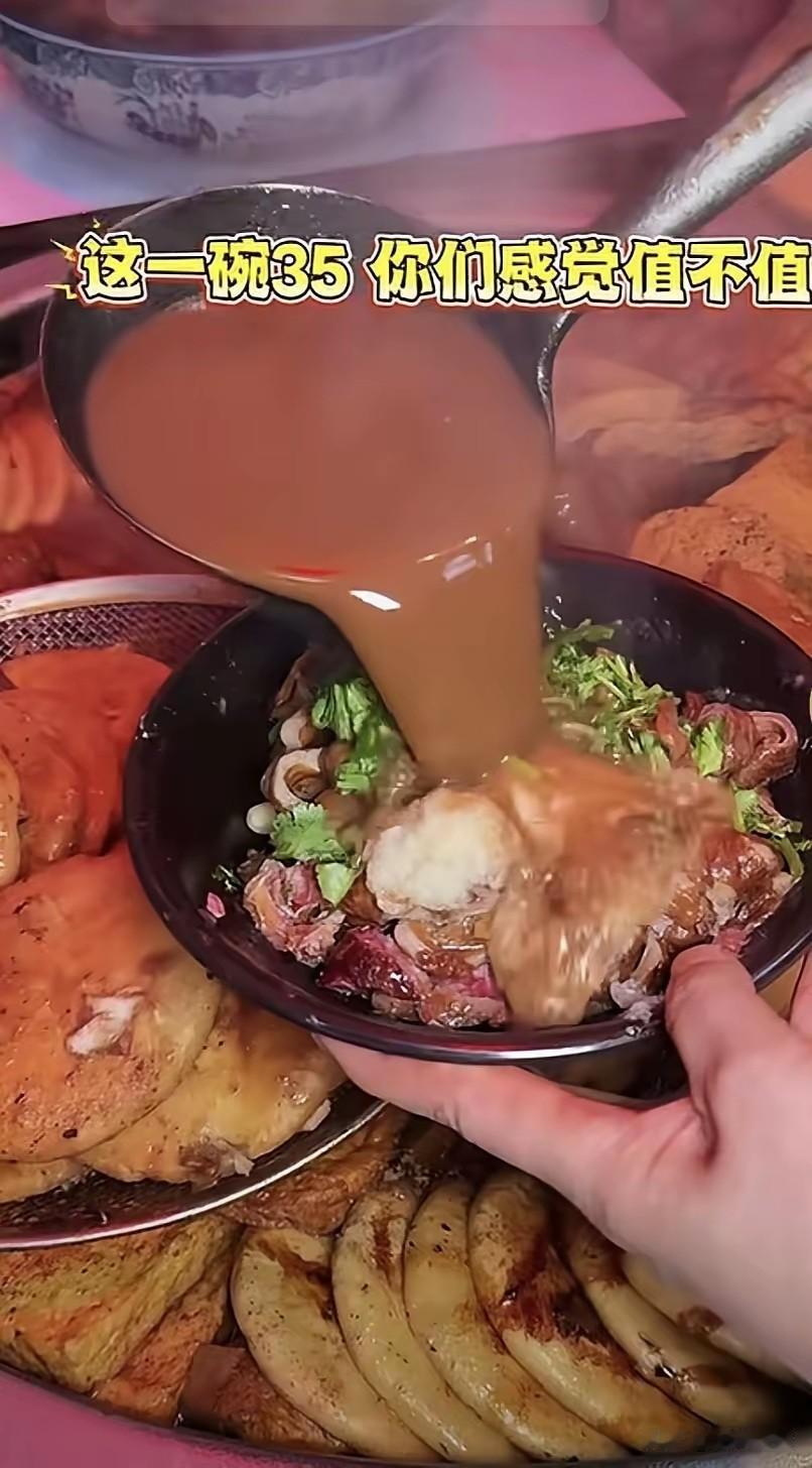 北京最正宗的卤煮火烧,一碗才卖35元,这东西绝对物有所值,记得2024年的时候,曾在北京吃了一碗炸酱面,好像也20多块钱一碗,里面的东西没啥正经玩意儿,跟这玩意卤煮水烧没法比。看看这一碗碗卤水火烧,可谓色香味俱全,用的还都是真材实料,看着就好吃。不知道这东西在哪卖,有机会去北京的话,一定去吃一碗,打打牙祭,解解馋!